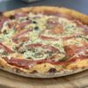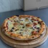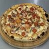 Pomodoro, mozzarella, camarones al ajillo, champiñones, carne de res y cebollín.