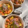 Salmón, cebolla morada, cebollín, mix de morrones, cilantro, sésamo, salsa soja, eneldo, jengibre y ají (opcional)