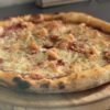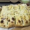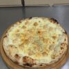 Salsa blanca, mozzarella, ostiones salteados y queso parmesano.
