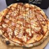 Salsa blanca, mozzarella, choclo, ají verde, pollo y tocino.