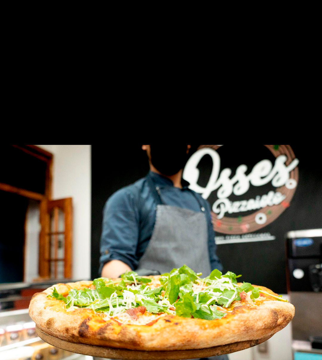 Pomodoro, mozzarella, camarones al ajillo, champiñones, carne de res, cebollín, ostión, mix de morrones, aceitunas, toques de perejil.