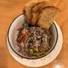 Dados de atún, palta, mix de morrón, cebolla morada, cilantro, eneldo, soja, limón sutil y sésamo.